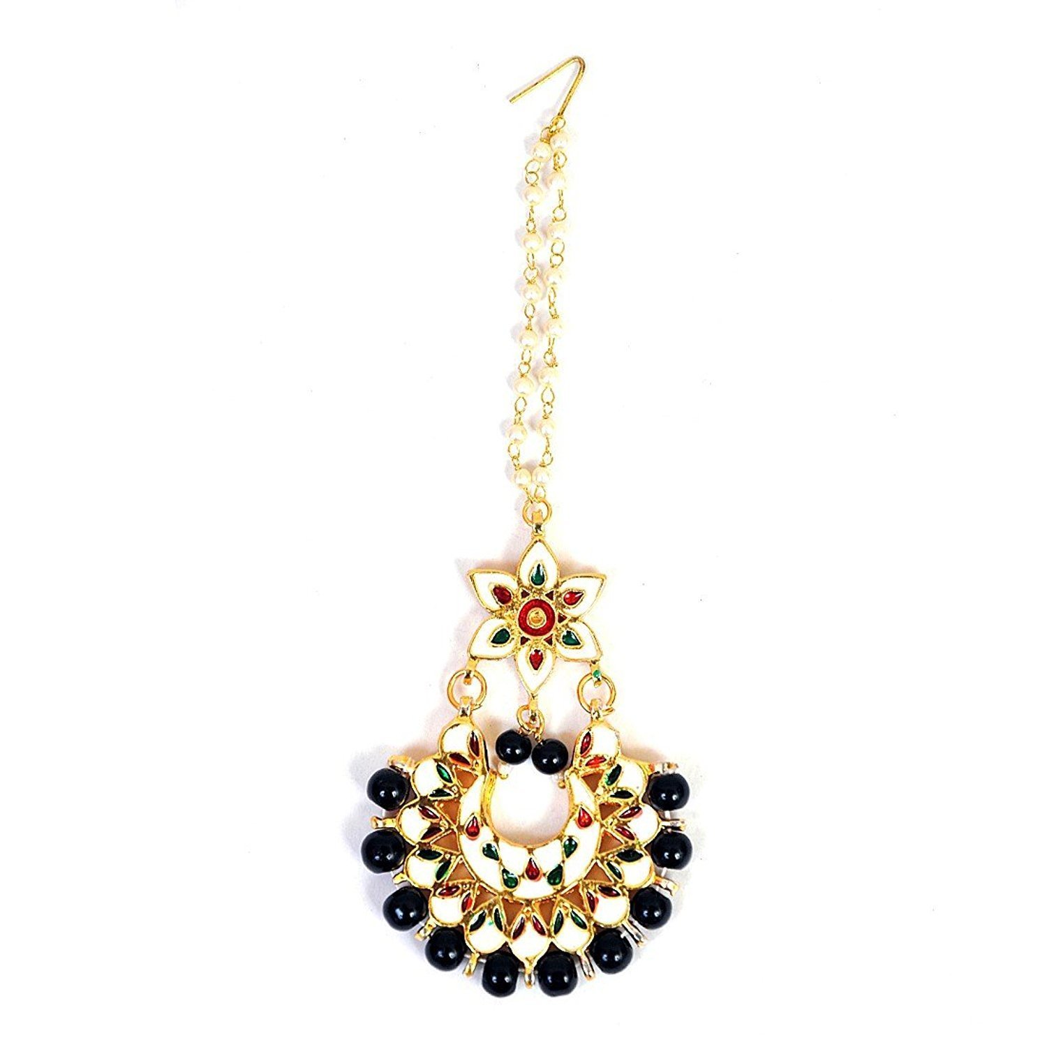 Big Round Maang Tikka Big Round Maang Tikka / The stick is appended to the hair so that the trimming dangles at the hairl.