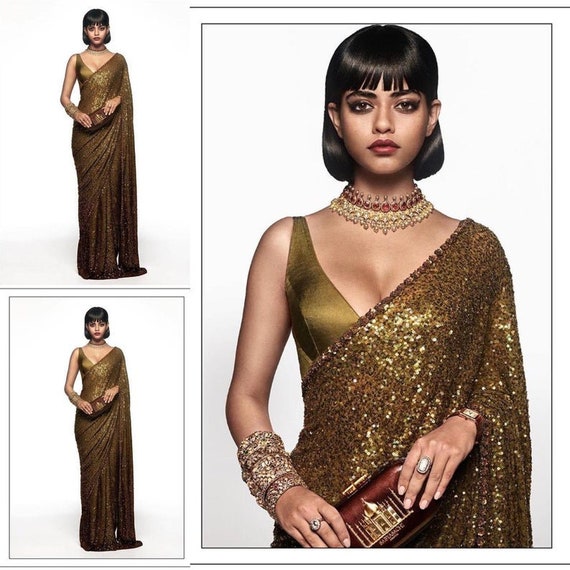 Deepika Padukone Style Sequin Fancy Saree With Colour Option - Manish malhotra's signature sequin saree have been the talk of the town.literally.