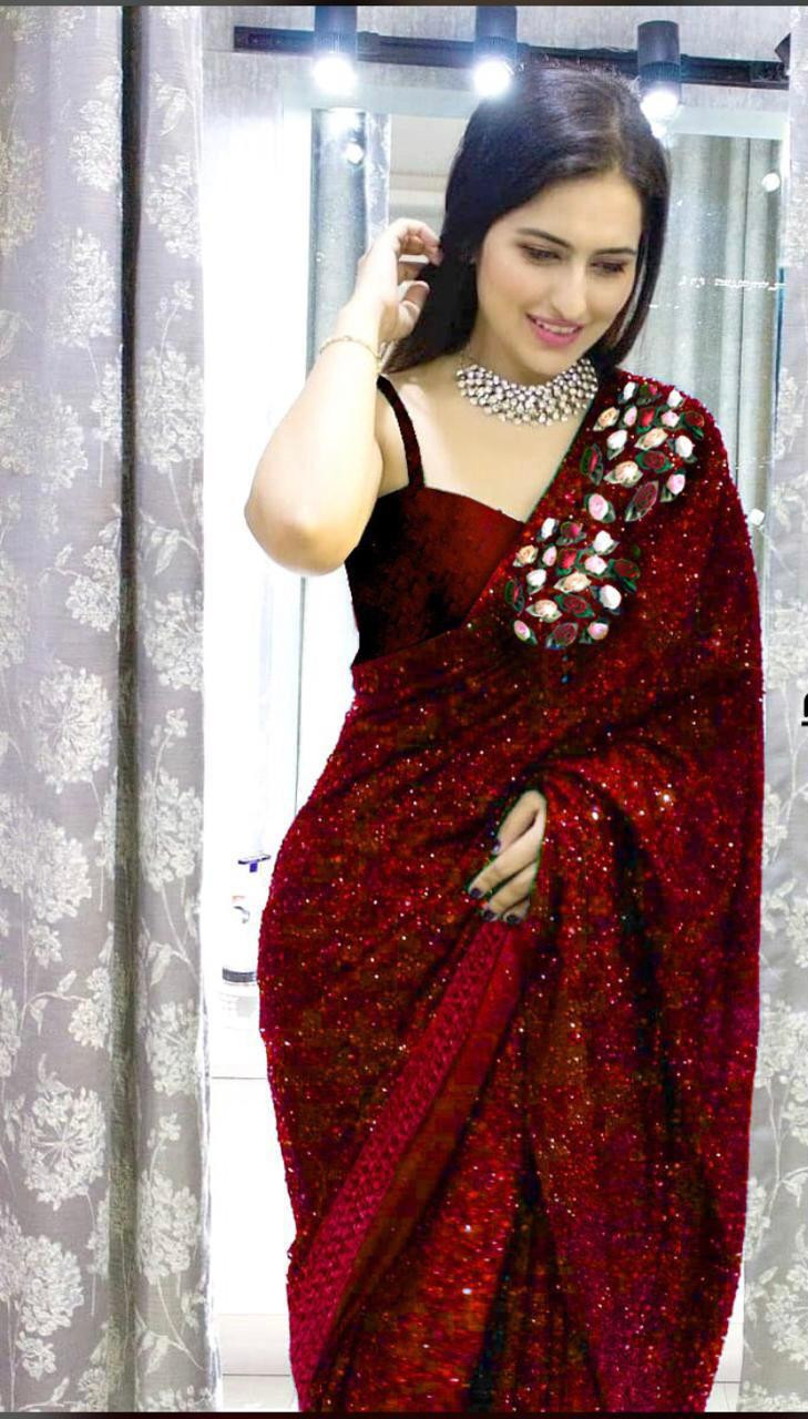 Wine Georgette With Heavy Sequins Work Saree Online Shopping Indian Dresses - Look dazzling and be the envy of all eyes when you don a designer sequin saree for an upcoming function or event.