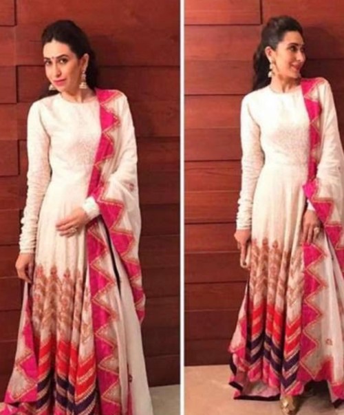 Get The Celebrity Look With This Surreal Off White Gown Sported By Karishma Kapoor Soft Pin Tuck Bollywood Fashion Indian Designer Wear Clothes For Women - Both karishma kapoor and amrita arora were spotted wearing similar print outfits on the same day.
