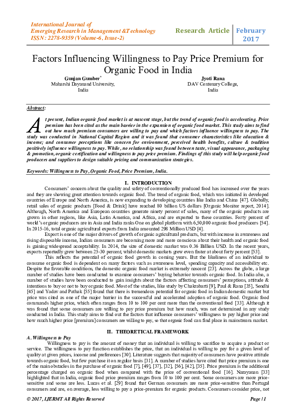 Pdf Factors Influencing Willingness To Pay Price Premium For Organic Food In India Gunjan Gumber Academia Edu - Major organic fruit producing states in.